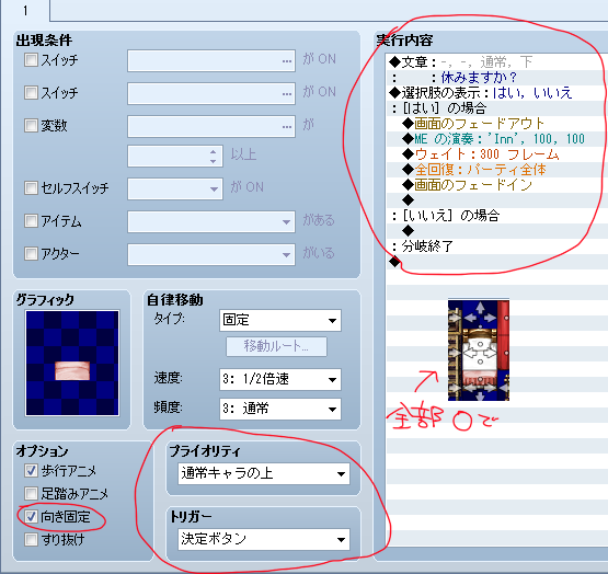 インポートしたらベッドの真ん中のチップの上にこのキャラチップでイベントを作ってください。